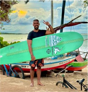 Além de competidor, sou professor de surf. Minha missão é mostrar aos meus alunos a verdadeira essência do surf, aquela que eu vivo desde pequeno. Quero que cada um deles entenda que surfar não é só técnica — é conexão, respeito, superação e liberdade.